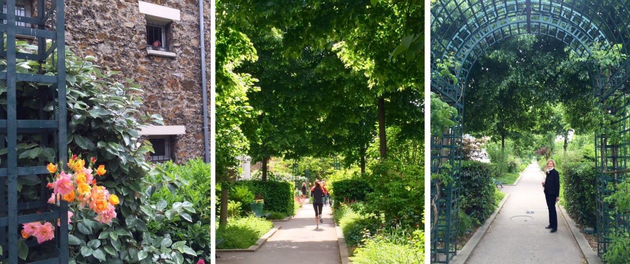 We went to Les Viaduct Des Arts in the 10e. The last two blocks we walked by ateliers who make and repair any musical instrument you can imagine. From violins to harmonicas to tubas and pianos – you can watch people work as you pass by. By re-purposing an old elevated train track a “green line” was put in its place. It is now a path lined with shrubs, trees and flowers. The arches below that supported the original track have been filled in with galleries now occupied by artists and artisans – furniture, sculpture, clothing, jewelry… a happy experience followed by a simple and delicious lunch at Au 105 La Renaissance owned by a charming gentleman from Algeria. A whole new meaning to the term “neighborhood bistro”… We arrived rather late for lunch, delighted to find we were the only English speaking guests. Others came and went. A few men who had been there for lunch left, then returned for their coffee, then moved to a table in the back to play a game of cards. The owner took off his apron and joined them, and did not mind at all when we had to interrupt him to ask for our check!