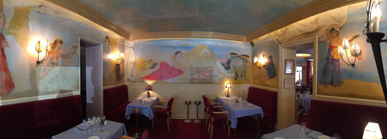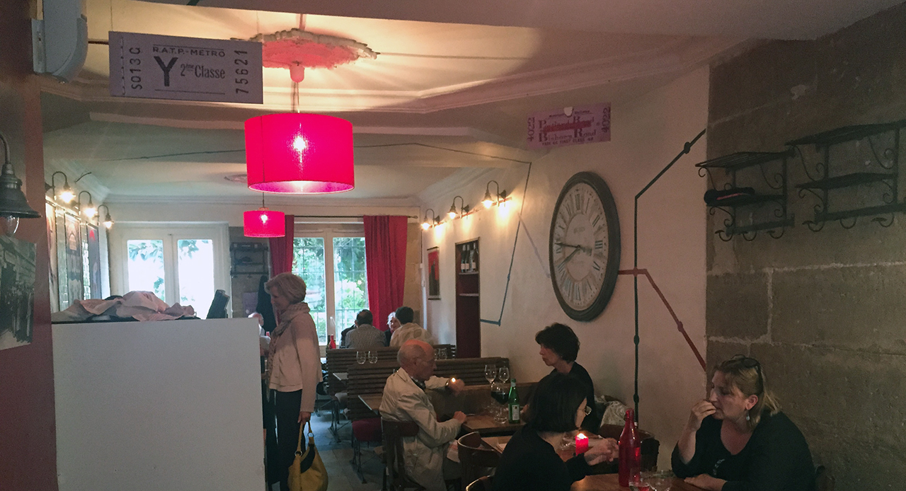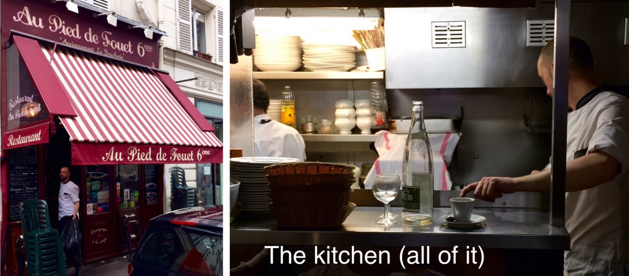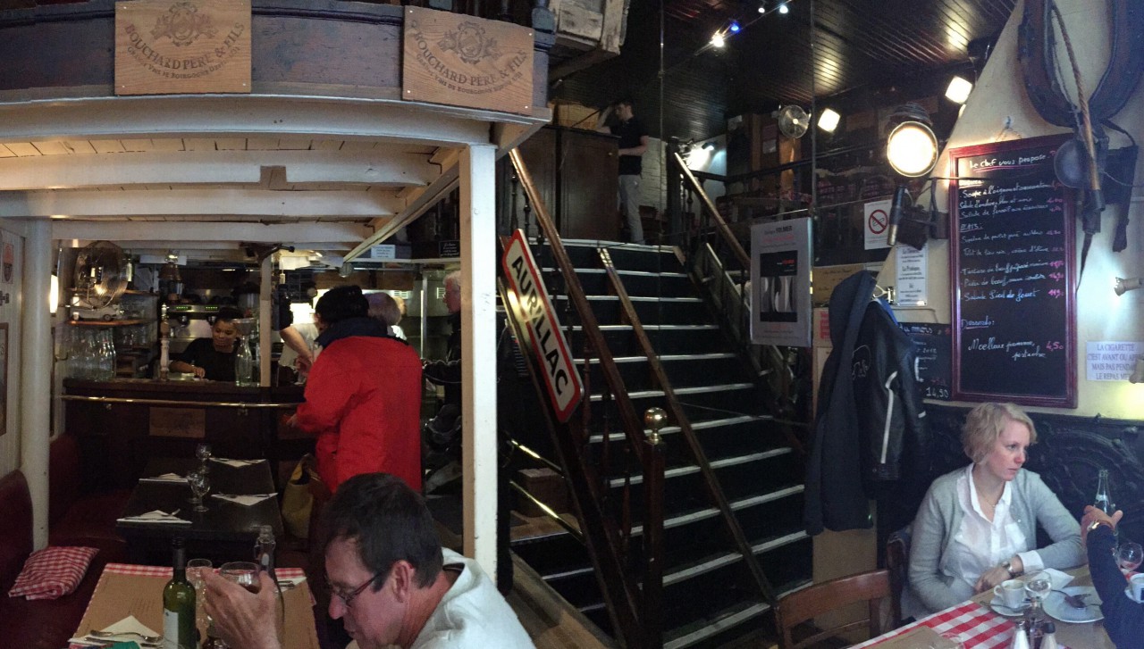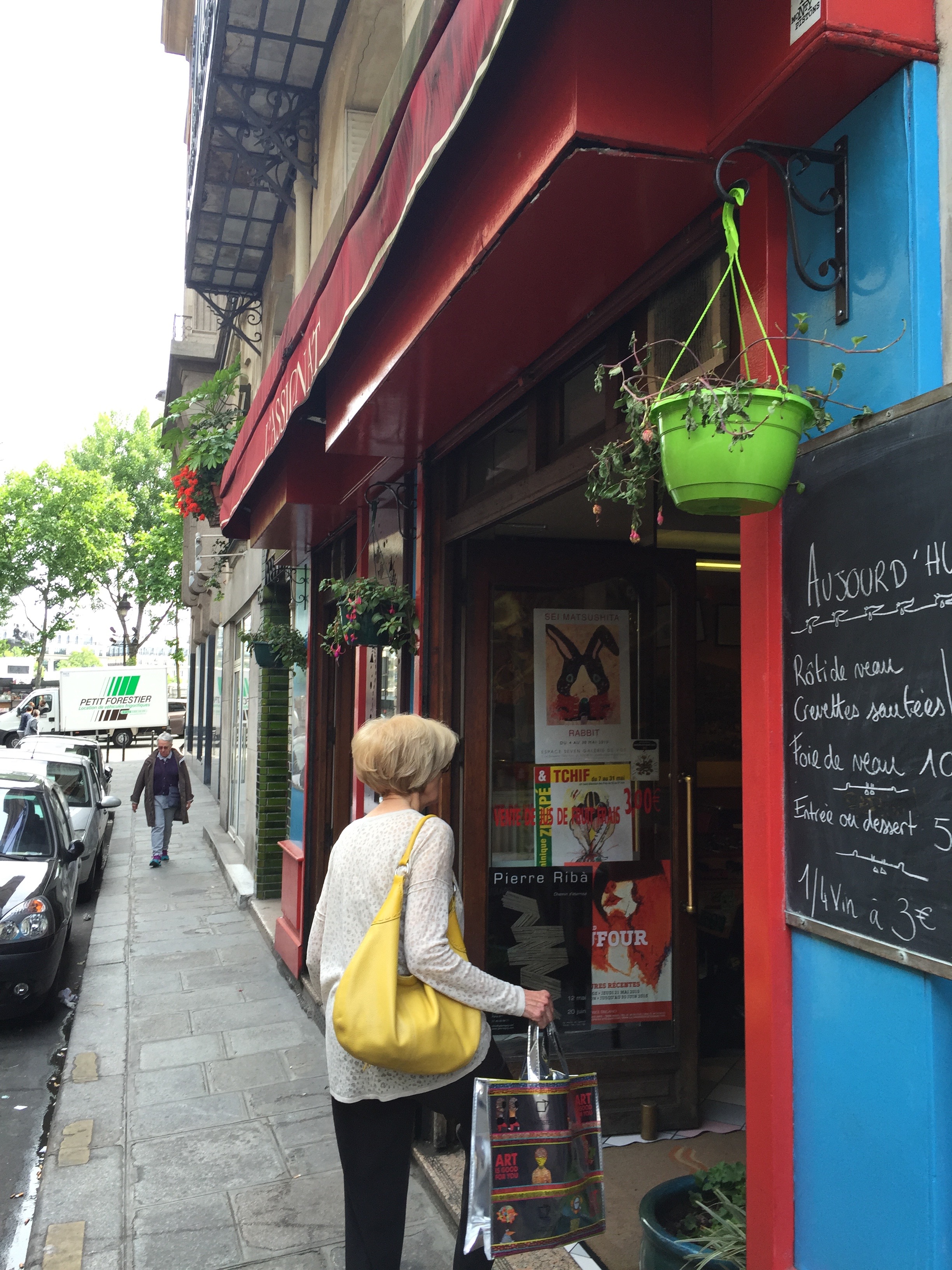 I was struck several times during our stay in Paris by how we were treated by everyone we encountered. Not that I anticipated it would be any different…..it did not matter where we went people made it a lovely experience. Okay, well there was this one tiny restaurant…..very old. So charming and “authentic” from the exterior, Tom insisted we try it. We never seemed to pass by when it was open, but one day we were looking for a place to have lunch and headed there. If it was closed we would go elsewhere. It was open, as soon as we went in we realized the quaint authenticity changed to just old. A fussbol table. Old photographs and posters hanging higgledy piggledy on the wall, most at the very top near the ceiling. The tables and booths were vintage in that they were original, I’m sure, hence no “design cred” and not a trace of “French style” that we who are not French go on and on about …