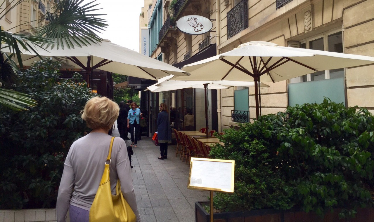 I realize it is a huge leap from the Plaza Athénée to this small restaurant – but there is a connection. At the Plaza Athénée we were whisked about by gracious young polished professionals in elegant soft gray uniforms. Here, we were waited on by a young woman dressed casually in black slacks and a simple cotton blouse, she wore little makeup, intent on doing her job and making sure we were pleased with our lunch. I just can’t bring myself to reveal the name after what I have written about it. It’s not important. The waitress is the focus here. She had to divide herself between the various customers and also tend the bar. Every once in a while she would stop, stand up and push her hair back, checking off in her mind what she had to do next and then do it. She is one book end and the Plaza Athénée is the other…..Paris is in between.