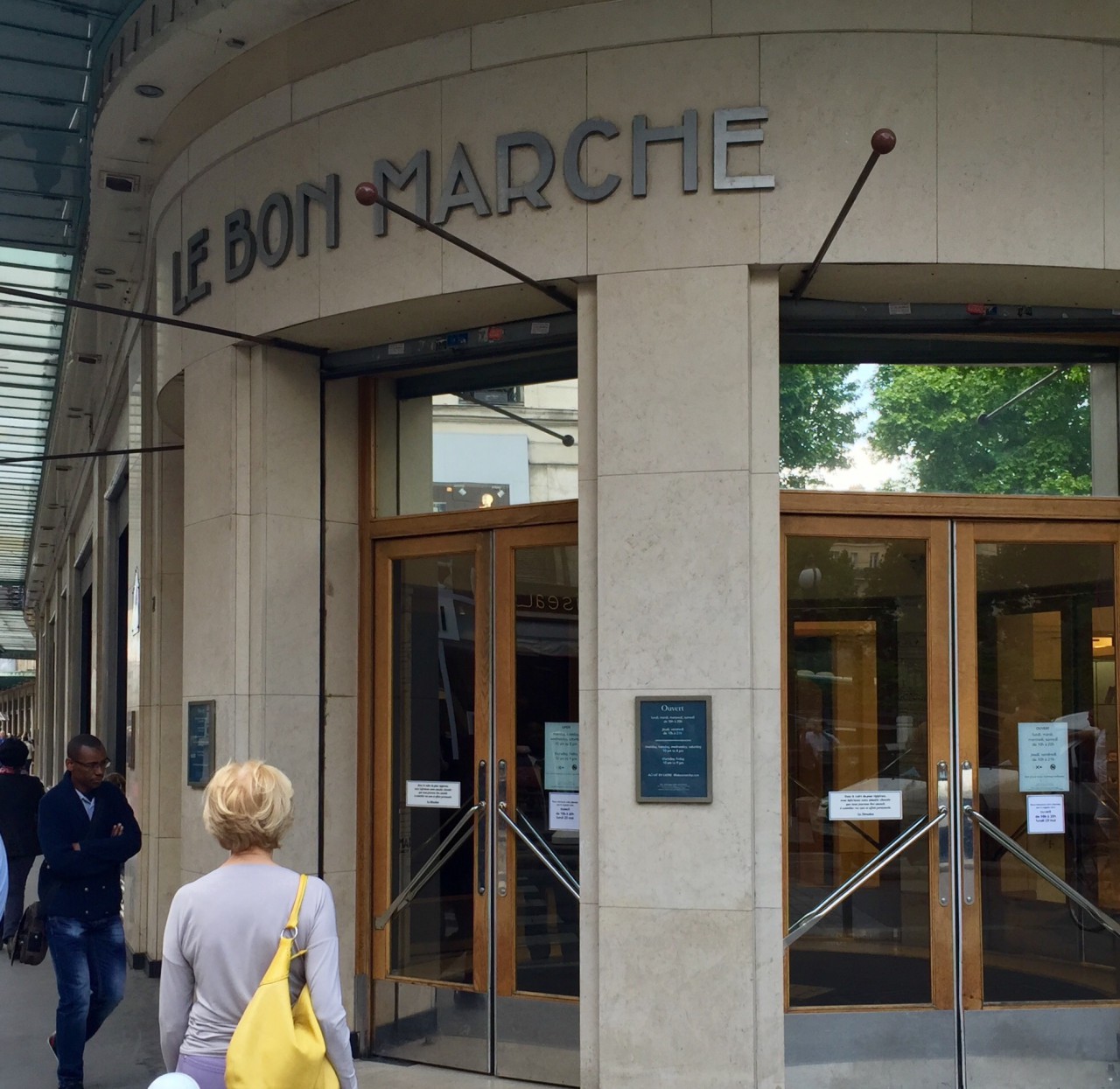 The stairs are a lovely old wood and wind gracefully from the entrance. One or two pieces of the balustrade are loose. If you hold on to the rail as you go along there is a pleasing sound the loose ones make, perhaps to remind you to treat it gently. We went to Le Bon Marché, famous in Paris, and beyond I suppose, a fashion design mecca. It was actually a pleasant surprise.