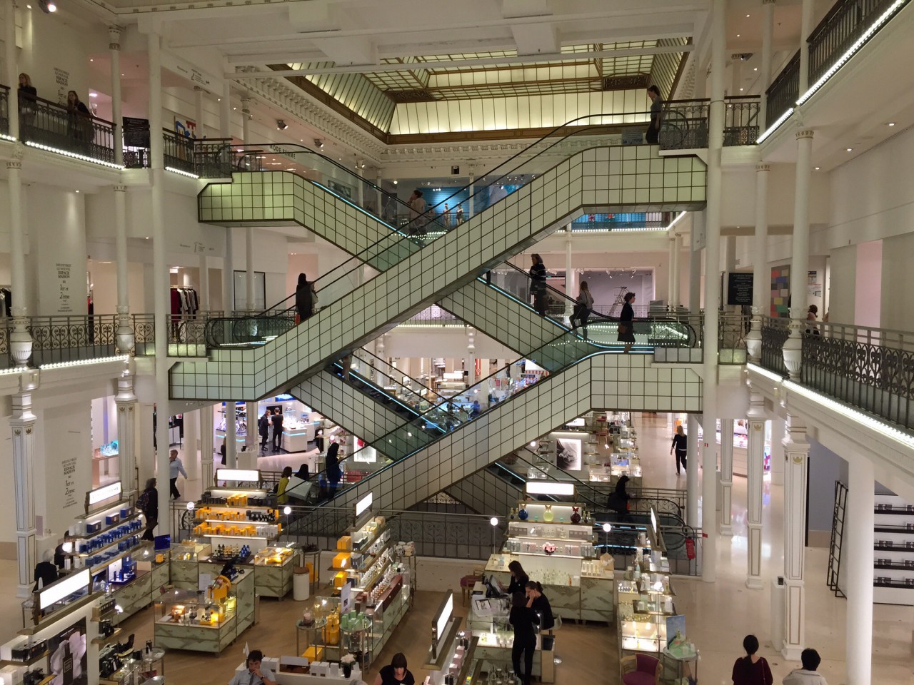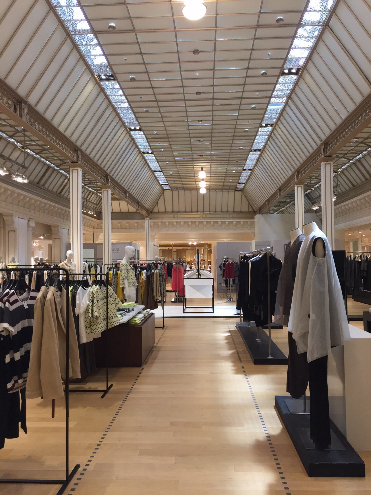 It is decidedly upscale, but not stuffy. A chance to see on a larger scale what you only see one or two of in fashion magazines. Not the beehive of tourists like Galeries Lafayette turned out to be where you could hardly make your way through the crowds of shoppers the day we went there.