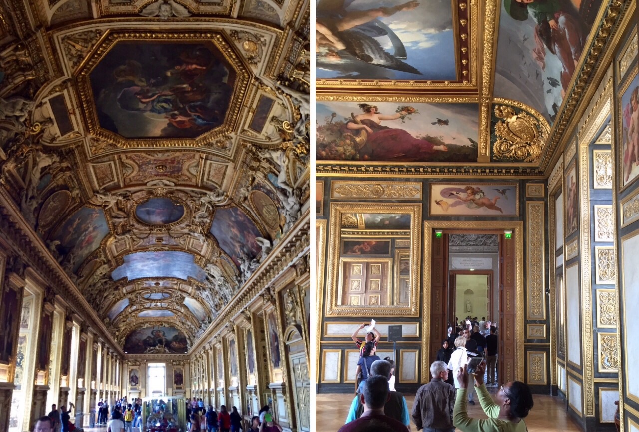 We finally visited the Louvre…. we began walking through and decided the best approach was to pick what we really wanted to see and off we went. The same principal applies here as to walking the streets of Paris where it is impossible for me to just walk along because each window display draws my eye. (Something that makes Tom just a little crazy… a lot crazy actually, until he finally decided it was useless and now his reaction is “there she goes. C’est la vie“). So here we are in the Louvre. We keep losing each other. Or it’s “wow, look at this”. Glorious paintings and sculpture that take your breath away. It’s not our first visit but one forgets what a treasure trove it is. We decide to see Napoleon’s Apartments… Napoleon III.