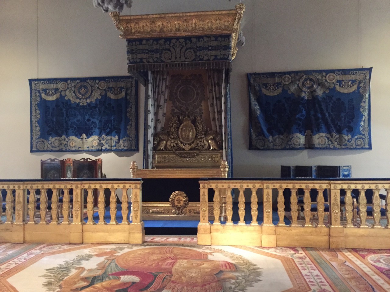 One jaw dropping room after another. They are now furnished with pieces that reflect the time or that belonged to a royal…. The bedroom of Charles X is simple, yet striking. Beautiful blue tapestries on the wall. It is arranged as bedrooms were, with chairs set about where members of his court would sit. Being in your bed, if you were a king, was quite a public affair. People all around. The public was allowed to just stream through.