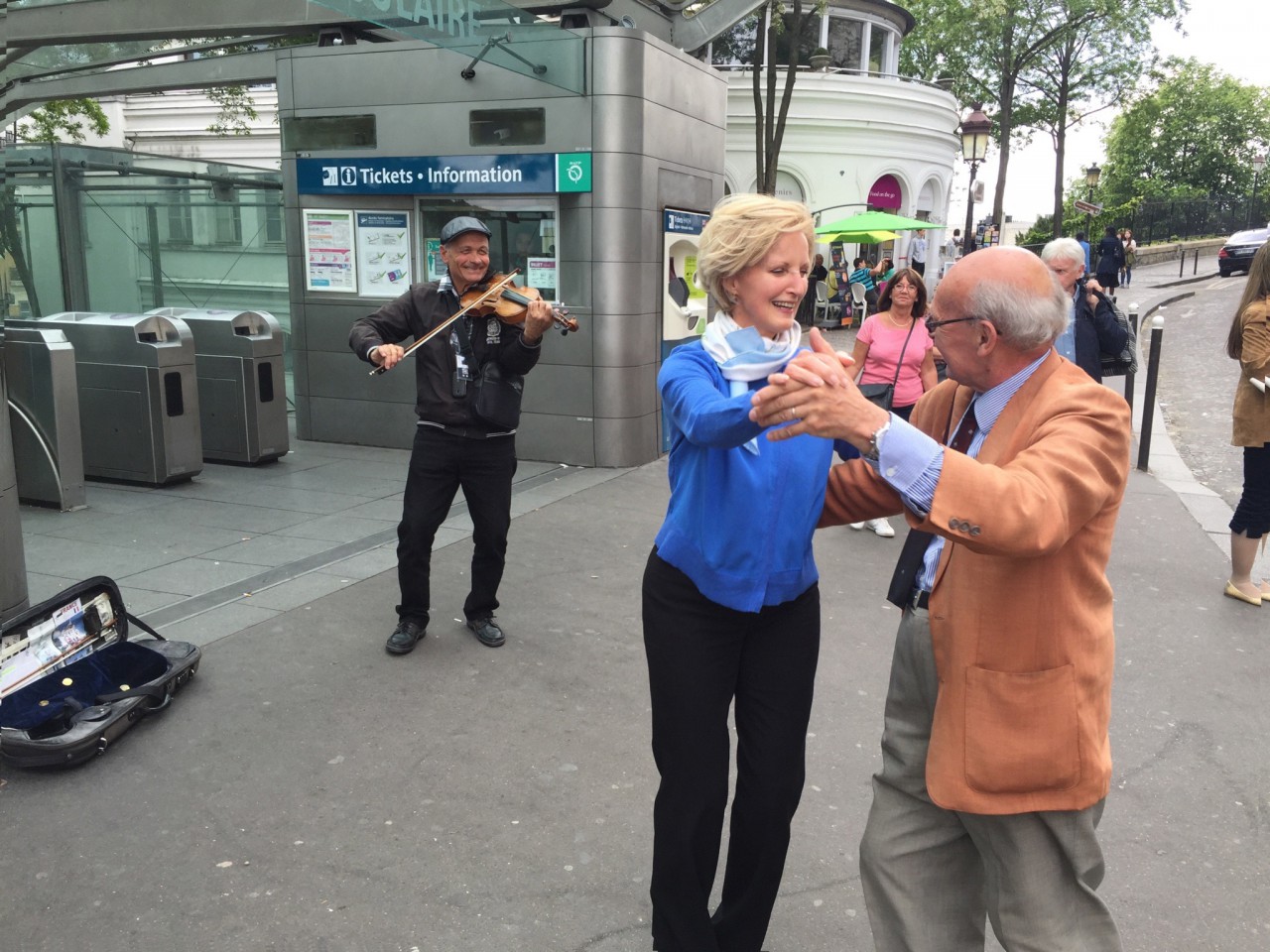 I danced in Montmartre! When we got off the funicular that takes you to the top of the hill and right to the steps of Sacre Coeur a man was playing a violin and another danced gracefully by himself. He looked up at me and smiled, motioned for me to join him which I did! Tom remarked later he may have been “a plant” and was in cahoots with the violin player…… I preferred not to think of it that way at all… he had a wonderful smile and was such a gentleman, smartly dressed in his summer linen jacket. A sheer delight and yet another unexpected Paris surprise.