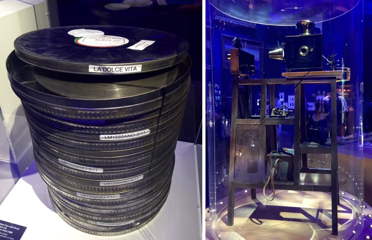 The exhibit includes this 30-foot high wall displaying thousands of motion pictures running simultaneously. The history of motion pictures is told in a fastinating documentary and through the display of equipment, sets and costumes that have played an important role in the advancement of the art.