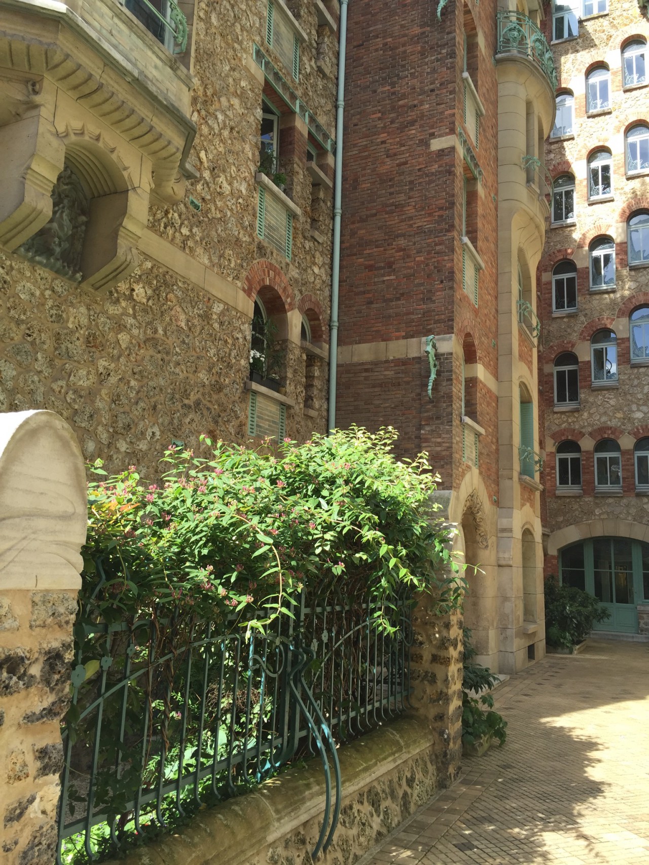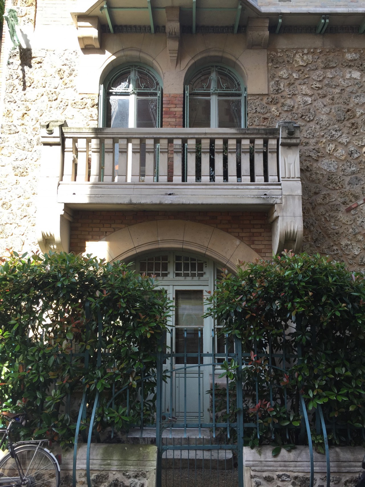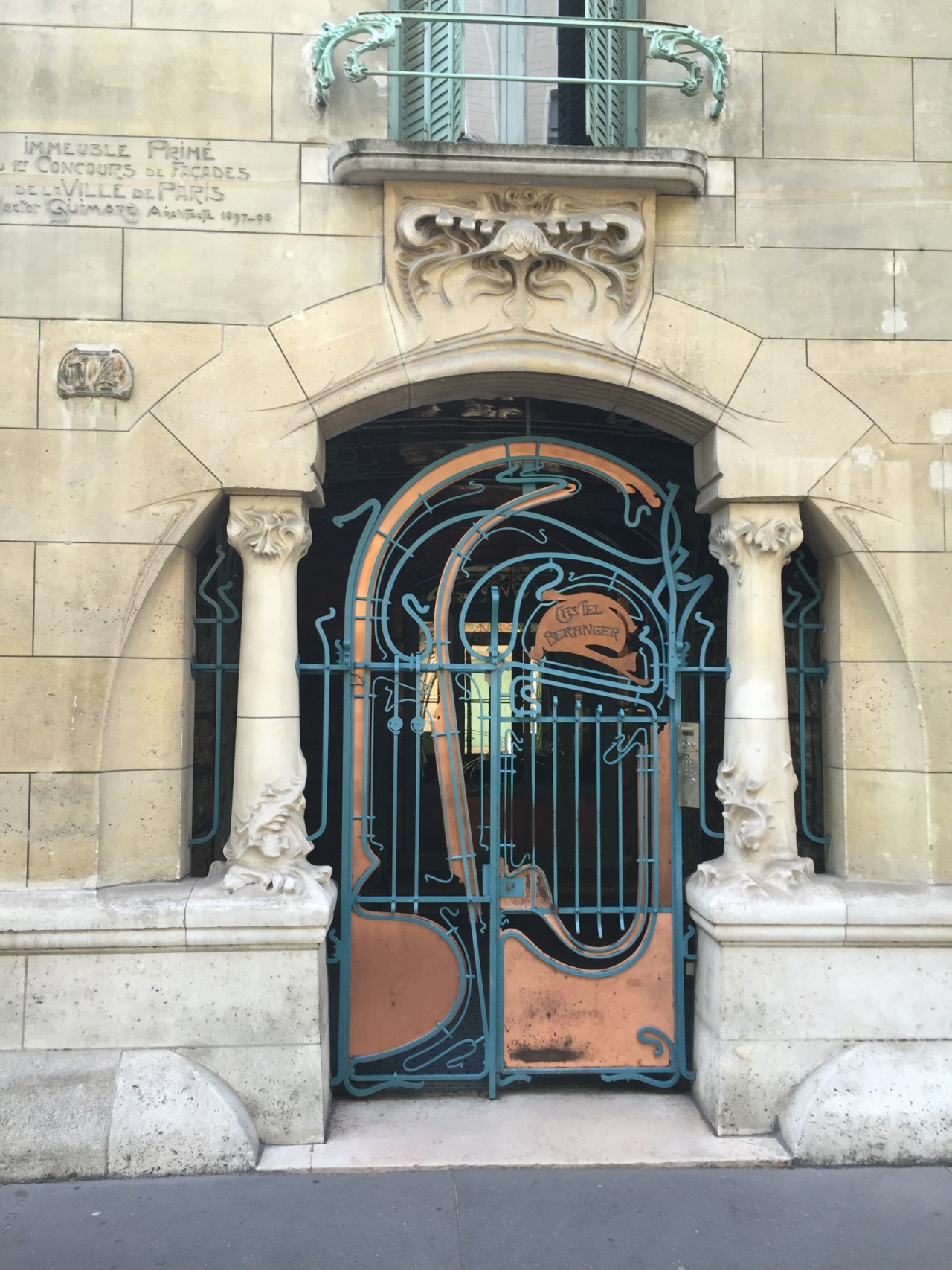 Our visit with John Davis led to the discovery of buildings designed by architect Hector Guimard. Born in Lyon in 1867, he was an important French architect, interior designer and designer of Art Nouveau objects. In France the Art Nouveau style is often called the “Style Guimard”. The building John Davis lives in was designed by Guimard, but his most important work and masterpiece was just up the street at 60 rue La Fontaine – the Paris dwelling Castel Béranger (1894-1897). Look closely for all the details in these photographs we took.