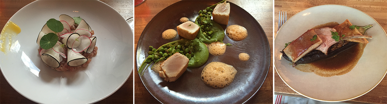 A little restaurant in the 11e…. Le Chemise. So good we went back a second time. I adore the waiter who looks like Johnny Depp….the two on either side of him are the owners. While the chef (on the left) is in the kitchen the other two move about as if they were dancers. Back and forth from kitchen to table. As if choreographed, lifting plates high or low in order to pass one another within the confines of their small dining room. We witnessed some very fancy footwork as they managed to avoid colliding.