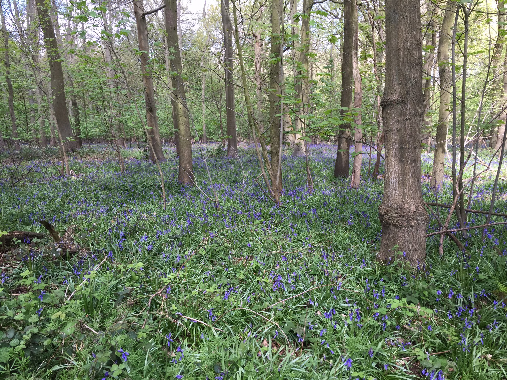 We could not get over the fence to get inside. There are lots of “pigeon holes” where each bird would nest/sleep….. Hence the term! It is where pigeons and doves were kept. The servants ate the pigeons, the gentry ate the doves! David had urged us to visit the bluebells in their woods by a small lake. We had to find the entrance and climb over a fence but we made it, as you can see.