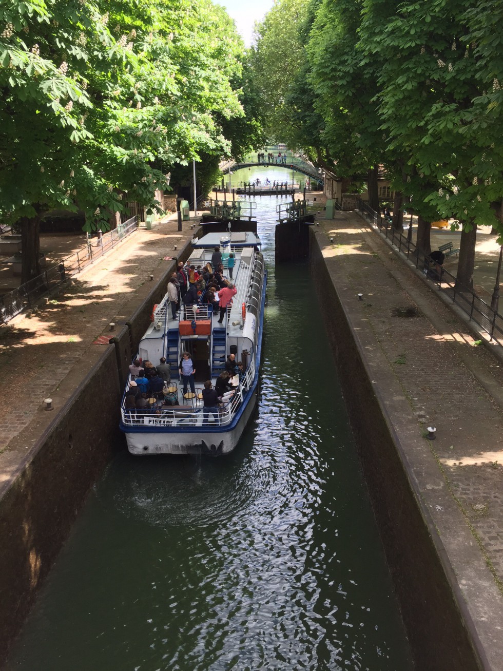 8 1/2 miles later (the app on the iPhone does not lie), our feet screaming at us, we walked into our apartment. Canals, yes. The other? A glimpse, but not much. We did watch a boat go through one of the locks, and walked up ( I felt like it was like climbing a ladder it was so straight up) a bridge to cross the canal, which, by the way was built by Napoleon to supply fresh drinking water to people who lived in that area.