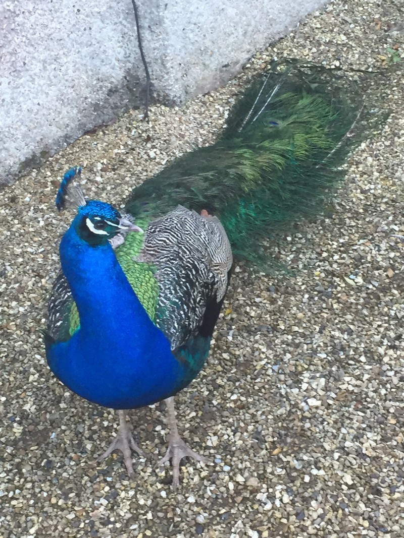 Suzy was there to greet us along with a peacock standing at their back door peeking through the glass pane into the house!