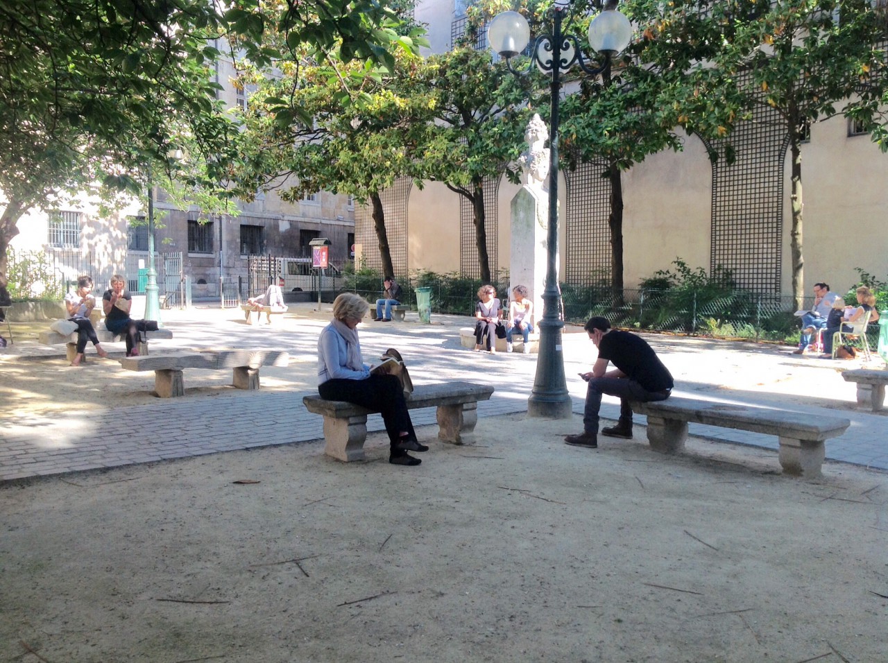 A friendly neighborhood open 24/7 with all the charm you could ask for. The day still before us, we decided to go to the Luxembourg Museum and see The Tudors exhibit…bulletins are plastered everywhere and as we had been watching Wolf Hall on BBC at home, we decided to check it out. A little shopping along the way! The exhibit was very good, however if we had not been watching the series we would not have been able to piece the history and people together. Tom had picked up sandwiches while I was trying on clothes. We took our lunch and my purchases into the park and ate while watching people all around us playing chess at special tables for anyone who wants to have a game. Some tables are set up permanently, one elderly man came with his own board – it was cut so that it would rest precisely on the slats of the back of the garden chairs. You simply set two chairs with the backs facing each other…voilà! It becomes a table.