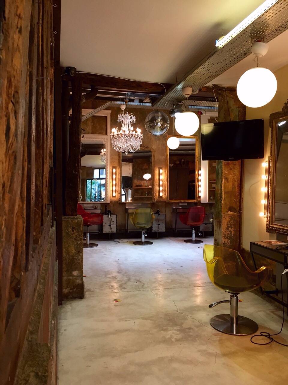 So I’m in serious need of a hair salon….I forgot my hair tools and have been walking around with big frizzy hair, not in keeping with the put together look of the French woman! Alas, the owner of our apartment suggested where to go….had to add this photo because it’s not what most of us are used to seeing, right? I was put in the hands of a young woman named Maud who took very good care of me.